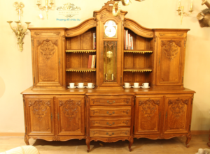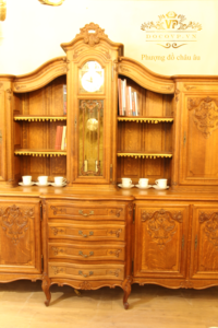 Đồng hồ tủ sách bằng gỗ sồi bầy đồ châu âu, tủ được thiết kế kiểu cổ điển. Các chi tiết hoa văn được chạm khắc tinh xảo.